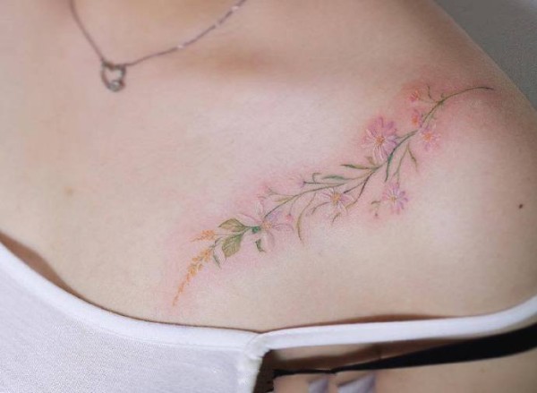 肩花纹身--一组适合肩部的黑灰肩花纹身图案欣赏