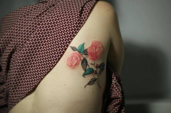 肩花纹身--一组适合肩部的黑灰肩花纹身图案欣赏