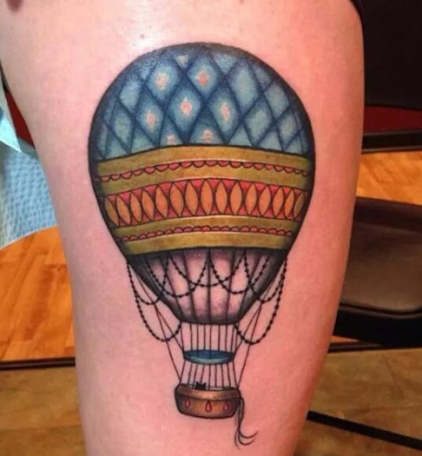 热气球纹身图案身 女生大腿上彩色的热气球纹身图片