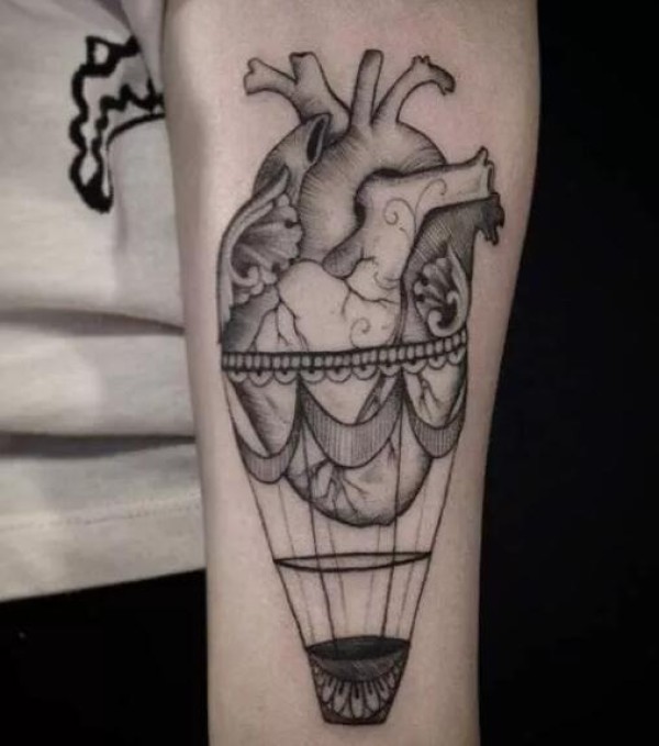 手臂纹身图片 男生手臂上人物和热气球纹身图片