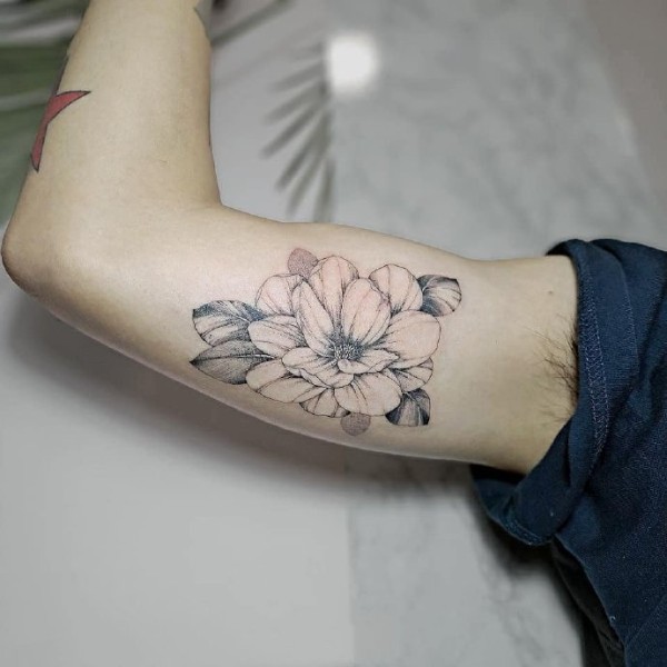 大臂素花纹身 9款女士的大臂黑灰花朵植物纹身图案