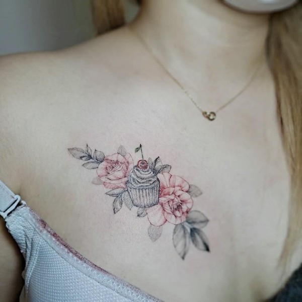 女孩子锁骨肩部的素花纹身图欣赏