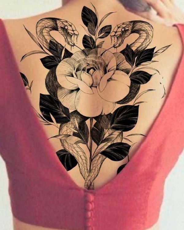 大臂素花纹身 9款女士的大臂黑灰花朵植物纹身图案