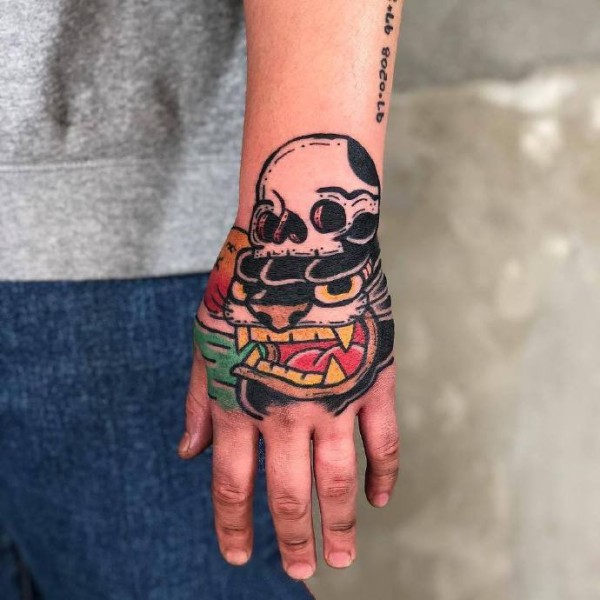 手背上的9张oldschool纹身图片