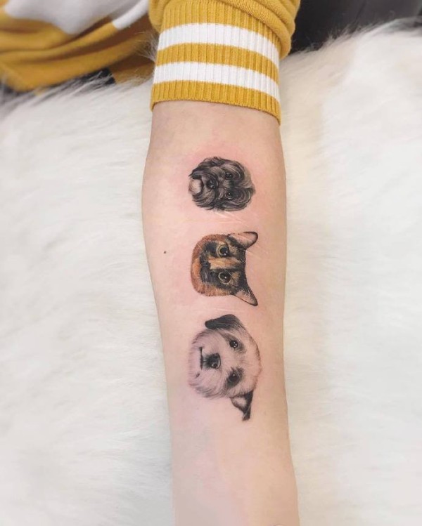 猫狗纹身 可爱小猫小狗主题的一组彩色小纹身图片