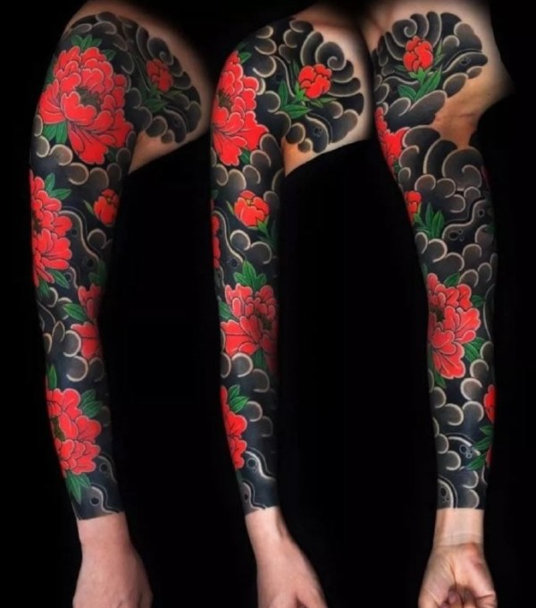 欧美花臂纹身_22张霸气黑灰欧美大黑花臂纹身图案作品图片