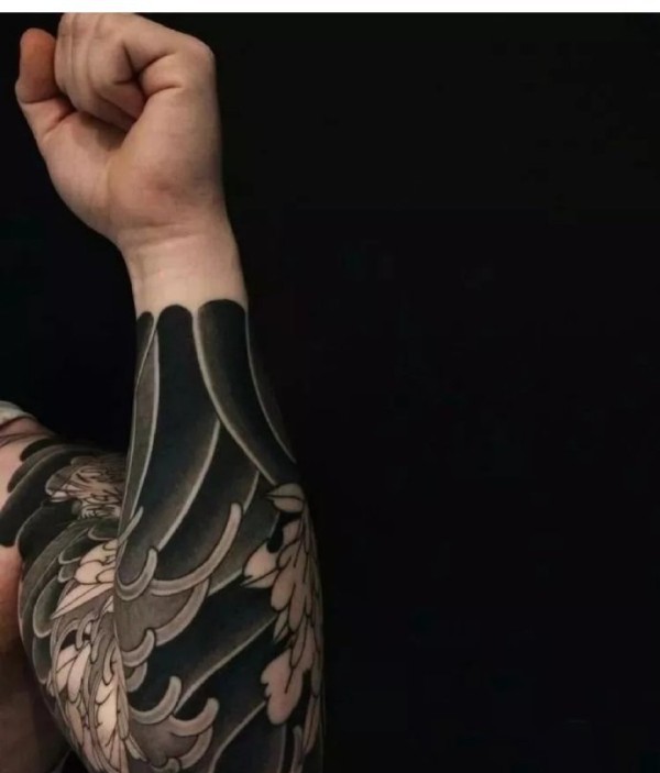 欧美花臂纹身_22张霸气黑灰欧美大黑花臂纹身图案作品图片