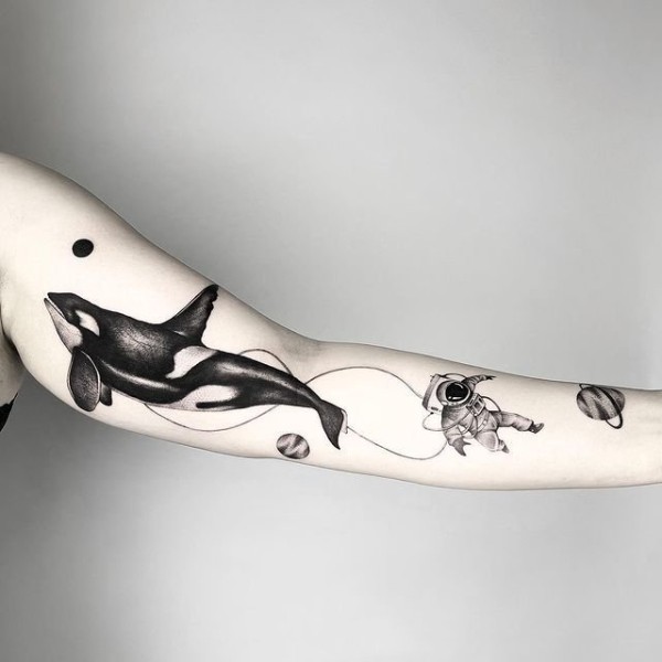心脏纹身图案 女生手臂上黑灰纹身心脏纹身图案