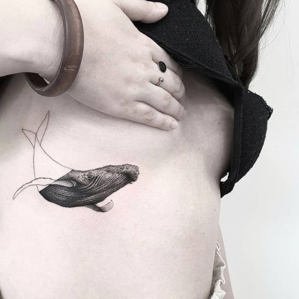 女生后腰纹身黑白灰风格抽象线条纹身图案