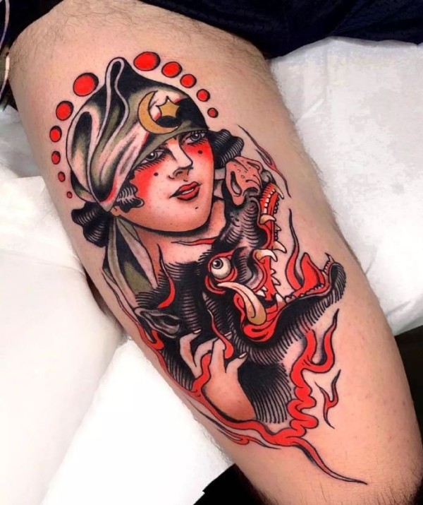 彩绘纹身-彩绘水彩素描的创意复古的女生人物纹身图案
