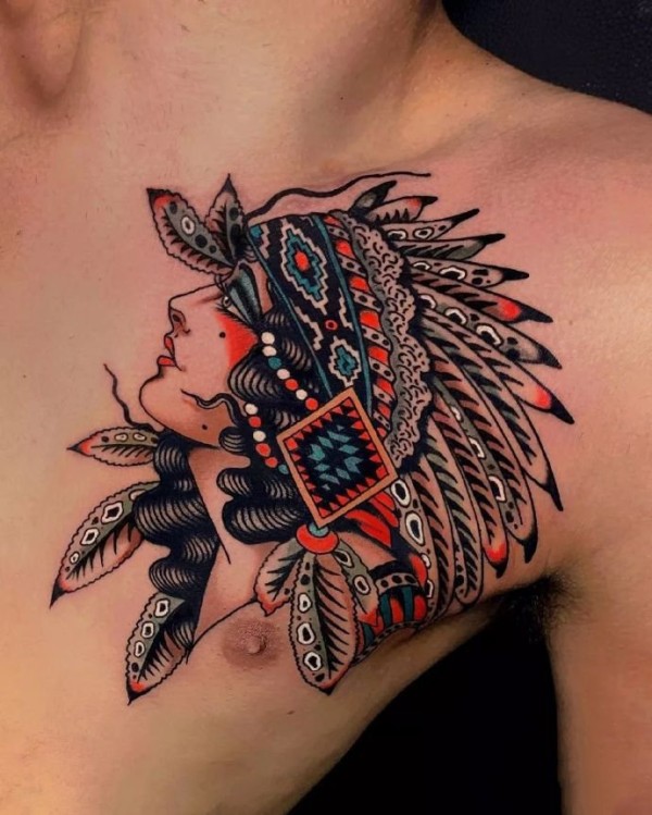 彩绘纹身-彩绘水彩素描的创意复古的女生人物纹身图案