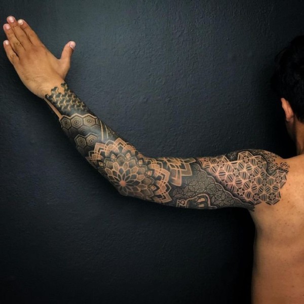 25款男性黑色手臂线条纹身点刺技巧半甲纹身图案