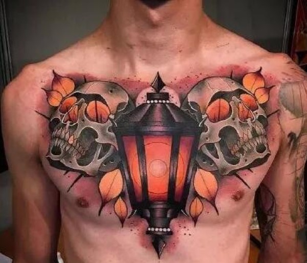男性花胸:一组男士胸前霸气的花胸纹身图案