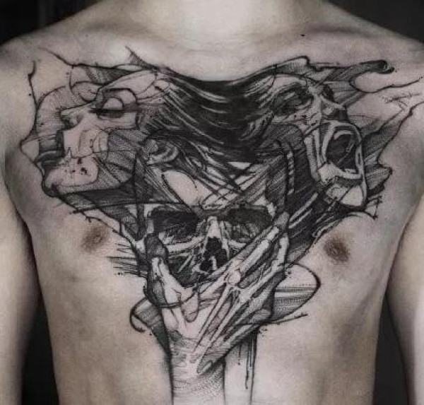 花胸纹身--一组男性霸气的大花胸纹身图案作品欣赏