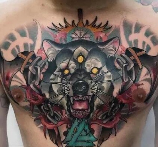 男性花胸:一组男士胸前霸气的花胸纹身图案