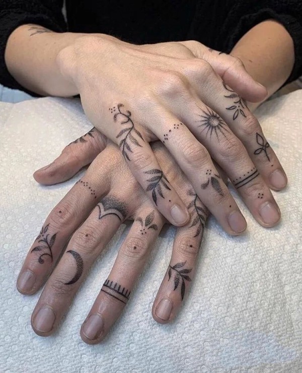 情侣恋人手指关节上的各种指环纹身图案
