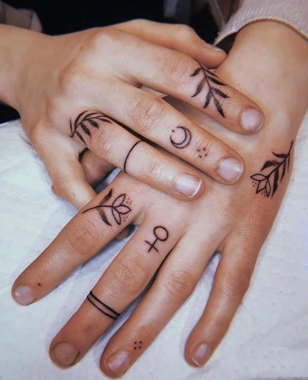 情侣恋人手指关节上的各种指环纹身图案