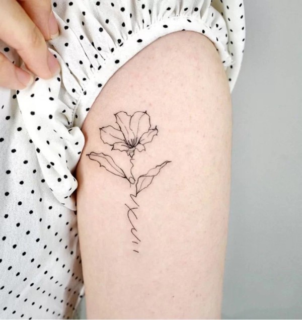 9张极简冷淡风的线条花朵纹身图片