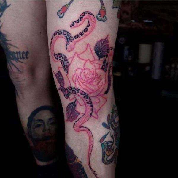 罕见且华丽的粉色暗黑系纹身图片9张