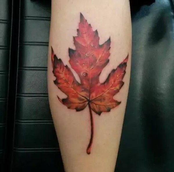 小腿对称纹身 男生小腿上叶子和猫头鹰纹身图片