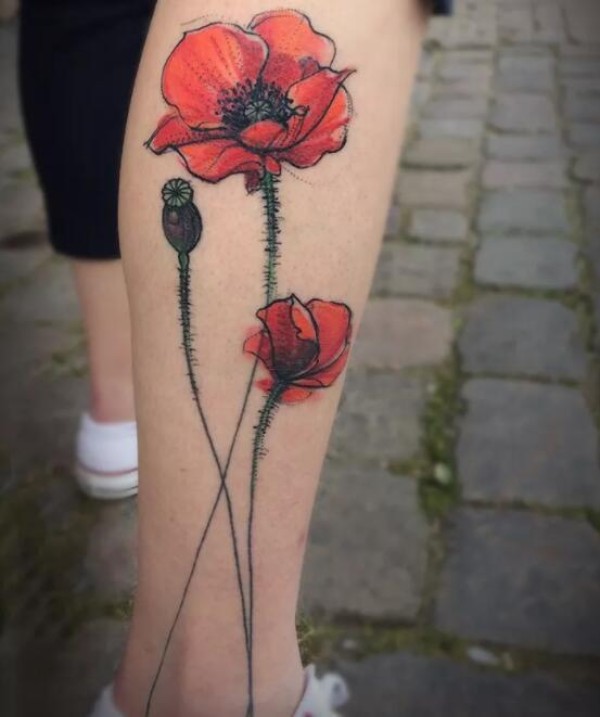 小腿玫瑰花纹身:9张小腿上漂亮的一组玫瑰花纹身图案