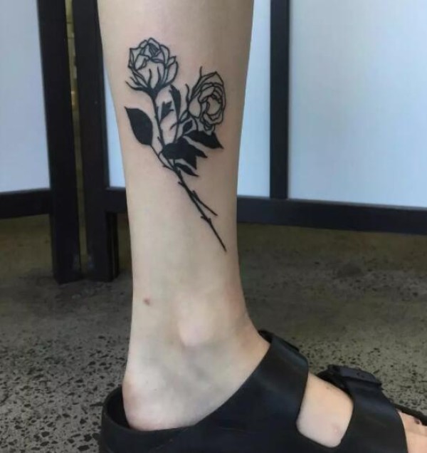 小腿玫瑰花纹身:9张小腿上漂亮的一组玫瑰花纹身图案