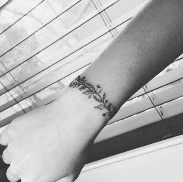 缠绕在小手臂手腕上的花藤纹身图案作品