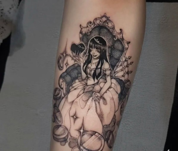 漫画纹身 日漫粉色风格的一组女郎纹身图片