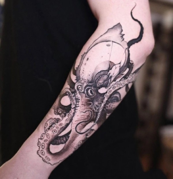 欧美花臂纹身_22张霸气黑灰欧美大黑花臂纹身图案作品图片