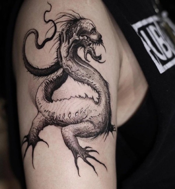 龙纹身手稿_一组老传统黑灰龙手稿纹身图案