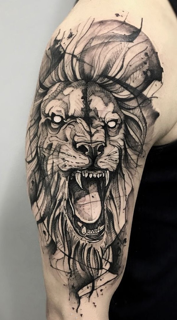一组好看的狮子纹身设计图案作品9张