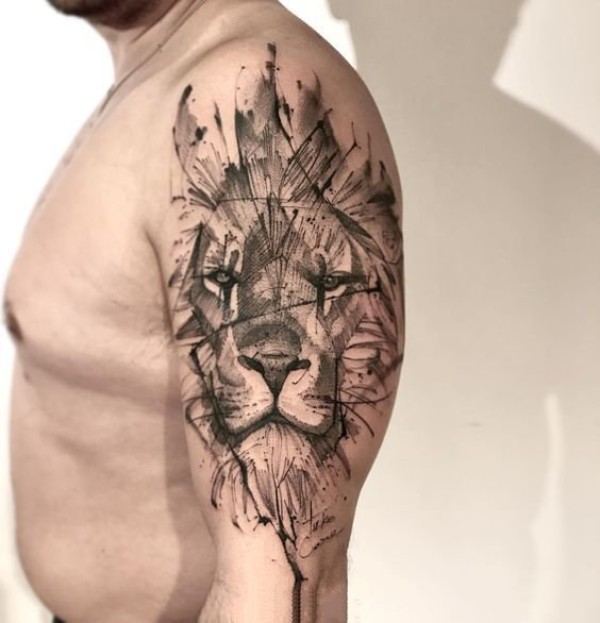 狮子纹身图--十二星座之狮子座的创意狮子纹身图案
