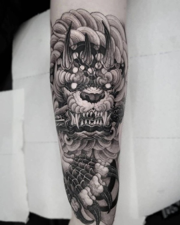 纹身狮子头手稿 黑灰纹身动物纹身狮子头手稿