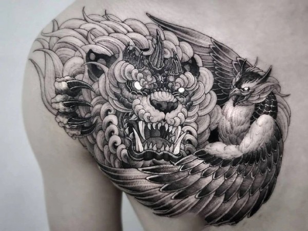 狮子头纹身手稿 黑色纹身狮子头纹身手稿