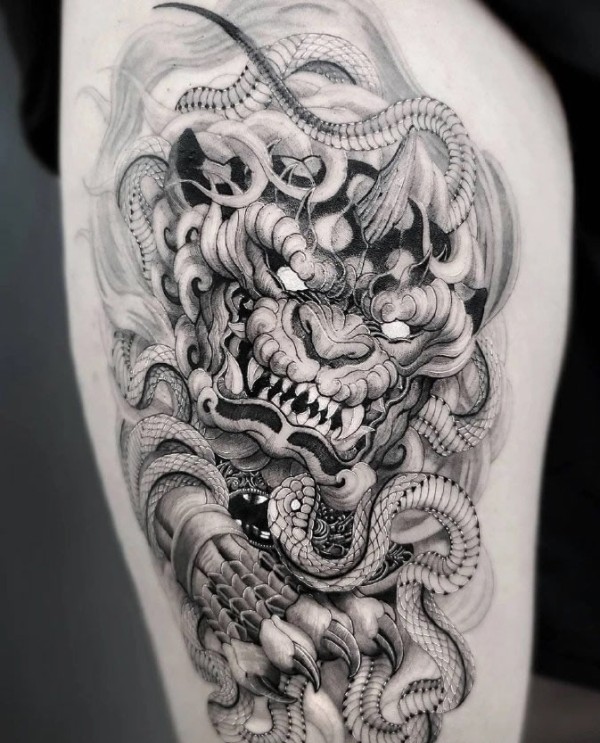 狮子头纹身手稿 黑色纹身狮子头纹身手稿