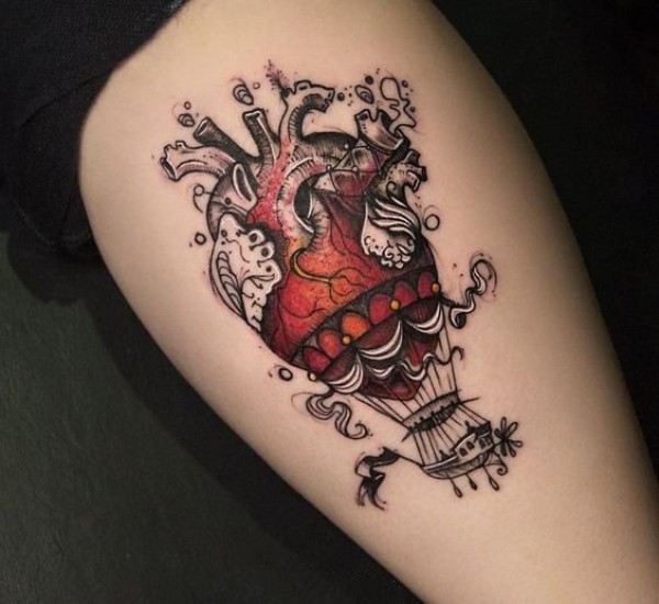 热气球纹身图案身 女生大腿上彩色的热气球纹身图片