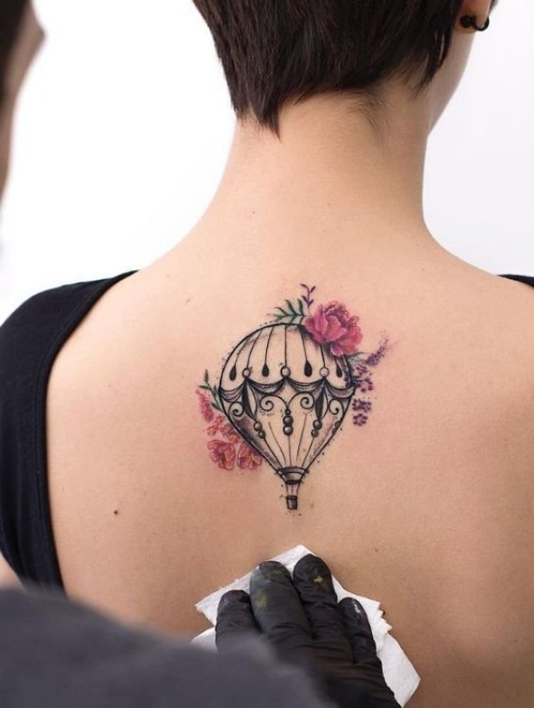 热气球纹身 男生手臂上花朵和热气球纹身图片