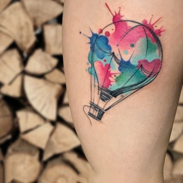 热气球纹身图案身 女生大腿上彩色的热气球纹身图片