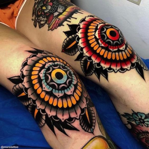 纹在膝盖上的oldschool梵花纹身图案