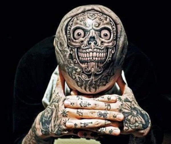 霸气男头部时尚纹身图片_头部纹身图案大全_纹身图吧