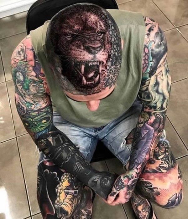 霸气男头部时尚纹身图片_头部纹身图案大全_纹身图吧