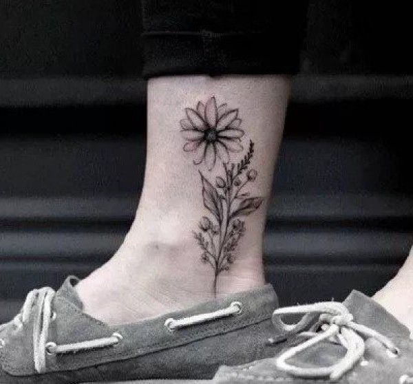 女生脚踝上的小清新花朵纹身图片
