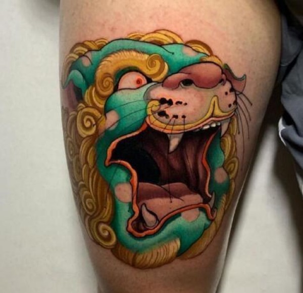 传统花腿纹身--18张传统风格的大花腿纹身图案作品