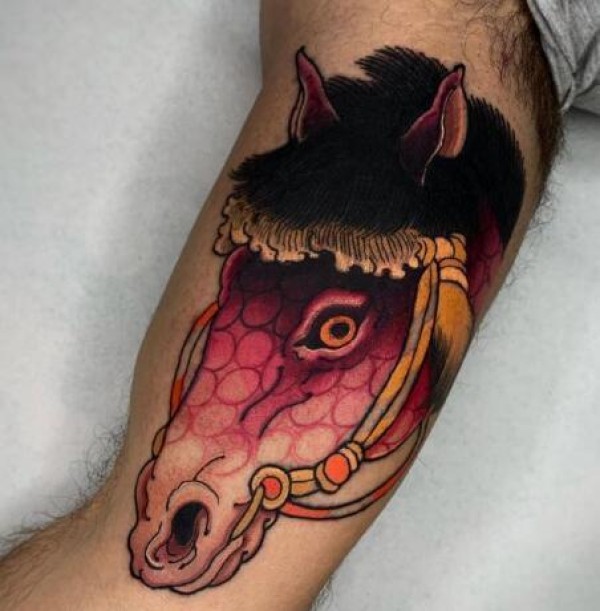 传统花腿纹身--18张传统风格的大花腿纹身图案作品