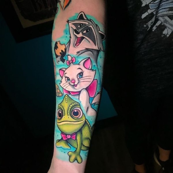 欧美newschool风格的手臂彩色纹身图