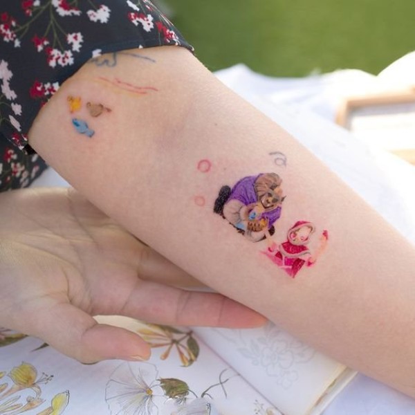 复古卡通红唇美女手臂纹身_卡通纹身图案大全_纹身图吧