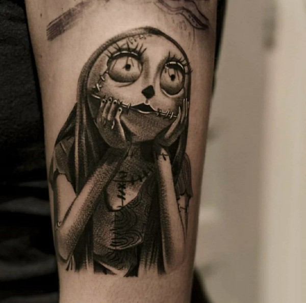 一套欧美动画片角色写实黑灰手臂纹身作品