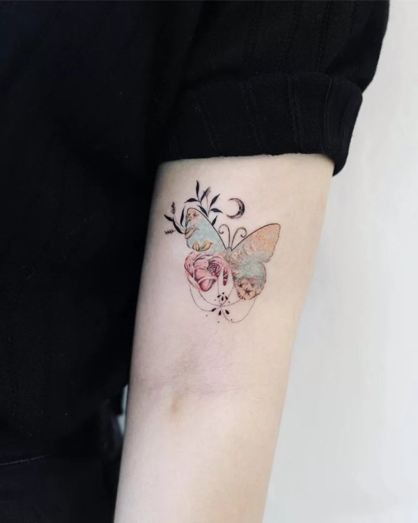 女性喜欢的漂亮的3D立体蝴蝶纹身图案