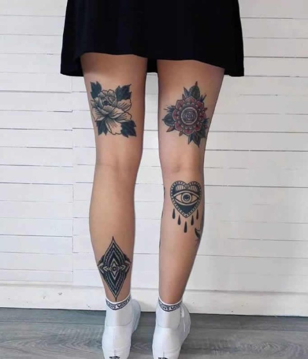 很漂亮的一组old school花臂花腿纹身
