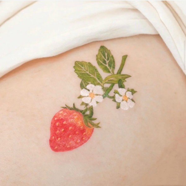 水果纹身小清新图片 酸甜可口的清新草莓纹身图案